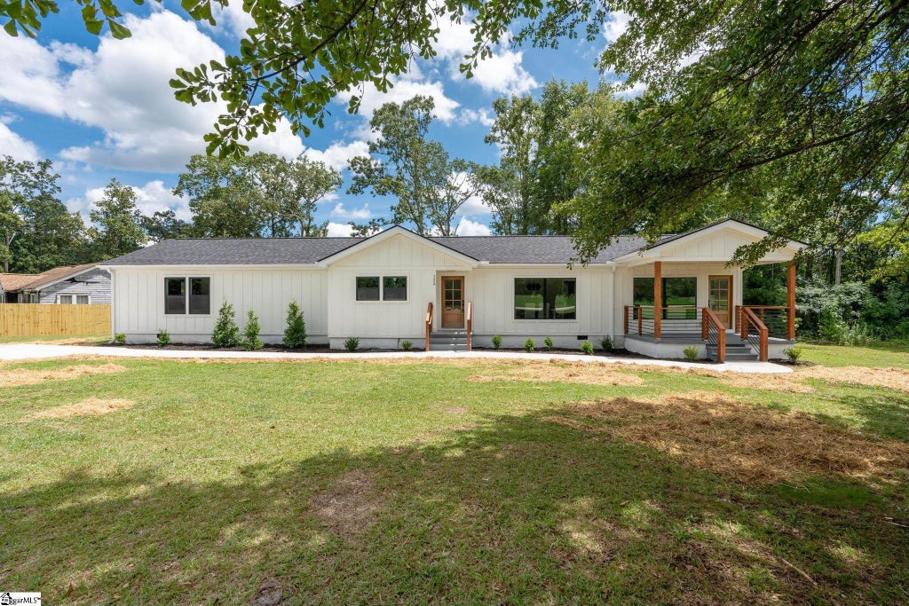 Welcome to 124 Edwards Circle in Simpsonville near the desirable Five Forks area: Amazing value - a renovated single-level home offering four bedrooms, three full baths, and over 2,000 square feet of beautifully designed living space. The striking modern exterior showcases fresh hardboard siding, while inside you’ll find gorgeous luxury vinyl plank flooring, quartz countertops, and a thoughtfully updated kitchen with brand-new stainless-steel appliances and stylish finishes. The light-filled primary suite is a true retreat, featuring a statement accent wall, two large walk-in closets, and a spa-like bath with dual sinks, a huge walk-in shower, and a soaking tub inside the shower enclosure. Two additional bedrooms share an elegant hall bath with a tub/shower combo, while the fourth bedroom offers its own private bath and oversized walk-in closet. Additional highlights include a spacious laundry room with electric hook-up, disappearing attic stairs for extra storage, and a flowing floor plan perfect for both daily living and entertaining. All NEW plumbing, electrical, roof, HVAC, water heater, appliances and so much more!! This move-in ready home combines modern style, functionality, and comfort in one perfect package. Situated on just under a one-acre lot and NO HOA, you are sure to love this beautiful home convenient to many wonderful dining options, shopping, award winning schools and MESA Soccer Complex and so much more! Call to schedule your appointment today!